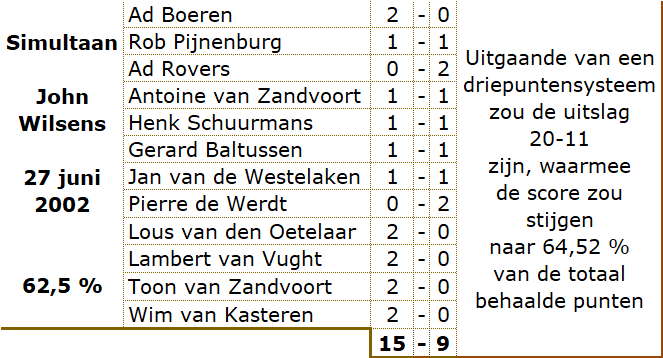 Op donderdag 27 juni verzorgde John Wilsens als kersverse kampioen een simultaan.