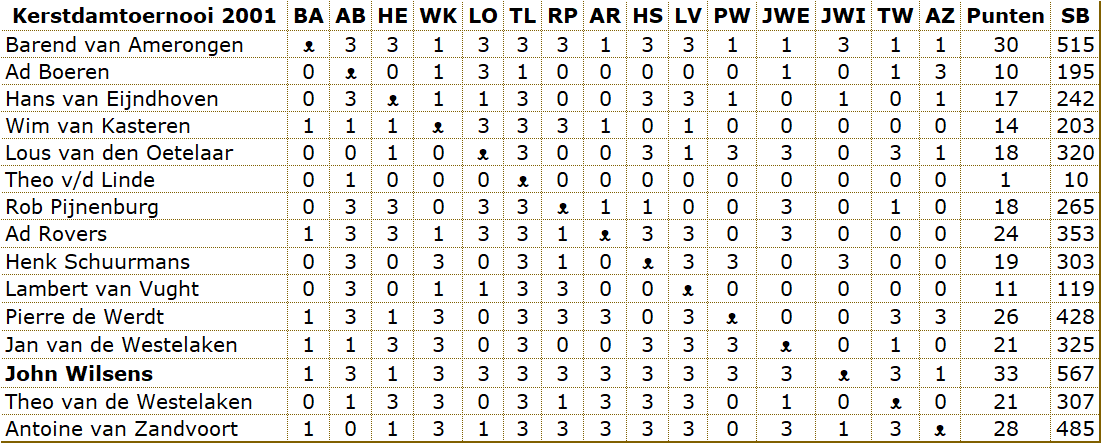 Zoals gebruikelijk werd het sneldamkampioenschap weer gespeeld in de vorm van een Kerstdamtoernooi.