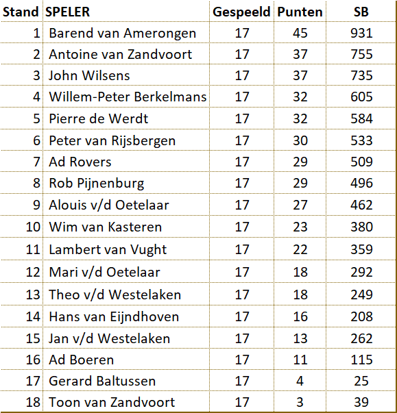 Onderin wisten Gerard en nieuwkomer Toon met moeite enkele punten te vergaren.