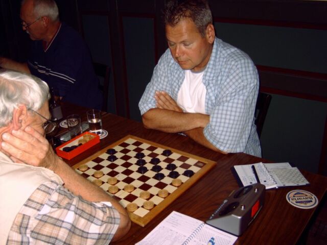 Een goede voorbereiding is het halve werk. De afgelopen periode heeft John zijn team voorbereid op de grote strijd. Kosten noch moeite werden gespaard om mentaal sterk voor de dag te komen. De tactiek was geweldig. De coach gaf zelf het goede voorbeeld door Mari met zijn eigen wapen te verslaan. Jan deed weinig onder en gaf Theo geen schijn van kans. Peter werd op bord 1 geplaatst met als taak de coach van de tegenstander in bedwang te houden. Met een verdiende remise is hij daar prima in geslaagd. Gerard pakt het winnende punt! Gerard had het in zijn partij tegen ex kampioen Alouis hard te halen. Hij kwam een schijf achter maar vocht zich een weg naar de damlinie. Alouis kwam tekort voor de winst. Gerard behaalde met zijn remise zeer tactisch het winnende punt. D'Amateurs 3 was kampioen! De wedstrijd tussen Pierre en Kees leek een formaliteit, maar dat werd een misrekening. In een uitputtingsslag behaalde Pierre enig voordeel en buitte dat steeds verder uit. Kees restte niets anders dan zich uiteindelijk gewonnen te geven. |