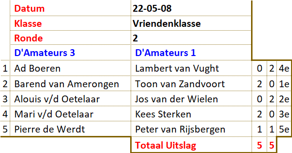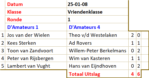 Doordat Jos zijn partij won werd die laatste ronde nog gelijk gespeeld.