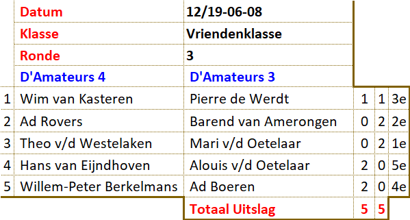 Weer werd D’Amateurs 3 onderling teamkampioen.