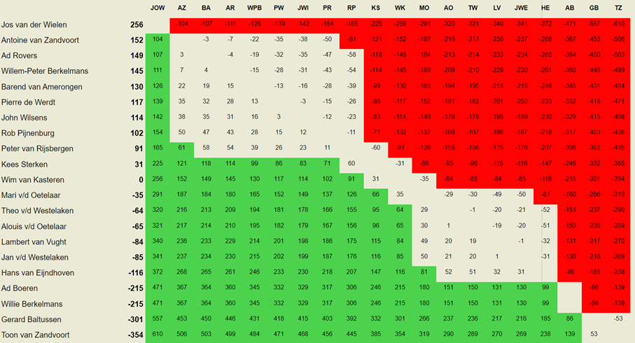 Kees leek het weer goed voor elkaar te hebben. Hij speelde zeer aanvallend, waardoor Mari onder druk kwam te staan. Het zat Kees echter weer niet mee. Door een tegenaanval van Mari, onze oude rot, kwam Kees een tempo tekort. In plaats van een gewonnen positie te verkrijgen, kwam hij steeds slechter te staan. Mari trok de teugels steeds strakker aan. Voor Kees bleef er uiteindelijk niets anders over dan te capituleren. Mari mag zich voor een jaar de Bekerkampioen van D’Amateurs noemen. Proficiat!