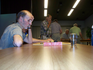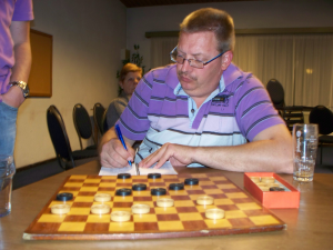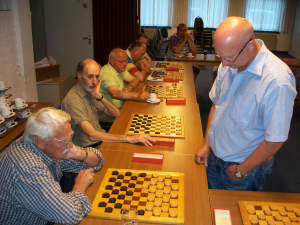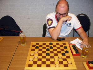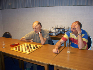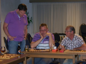 John heeft zijn kampioenssimultaan op donderdag 12 mei gegeven. Dat was slechts ruim 10 maanden na de simultaan van zijn voorganger. Deze keer werd de strijd daarom binnenshuis gevoerd, zodat er geen problemen met de verlichting zouden komen.