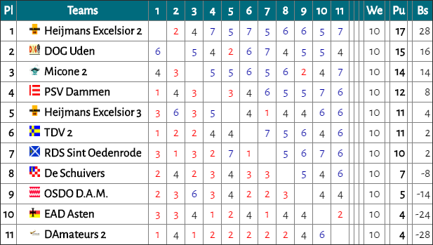De laatste ronde van de provinciale competitie werd door alle teams gezamenlijk in De Huif gespeeld. Ook D’Amateurs 2 wist in de laatste gezamenlijke ronde geen punten te pakken.