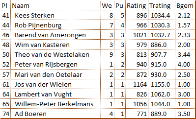 Het 2e team van D’Amateurs kon het kunststukje van D’Amateurs 1 niet evenaren. Gezien de ratingverschillen niet echt verwonderlijk. De prestatie van Rob viel erg mee. Daar stond tegenover dat Barend op papier gezien mogelijk een beter resultaat had kunnen behalen.