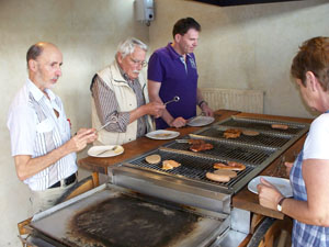 De seizoenafsluiting werd op 23 juni gehouden. John, Rob en Willem-Peter hadden een fantastisch programma samengesteld. Dat begon al om 10:00 uur met appelgebak. Antoine en Theo hadden dat al dik verdiend. Zij waren met de fiets naar Oirschot getogen.