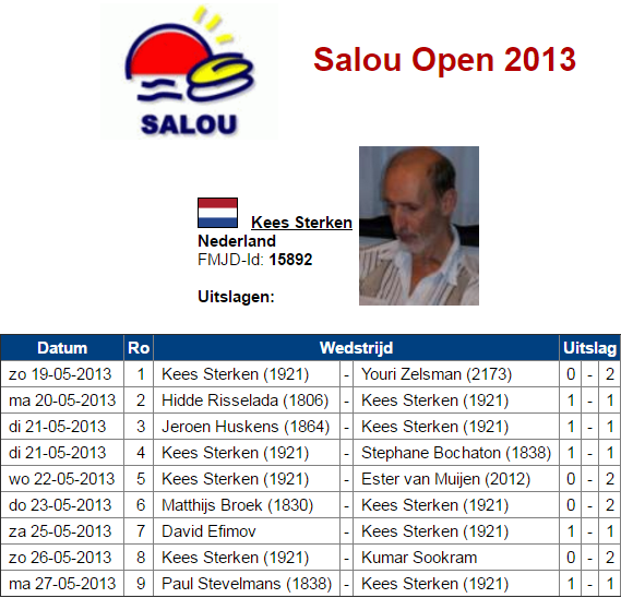 | 7e | Kees Sterken | 6-3 | |