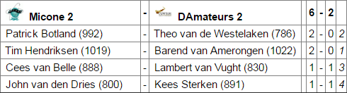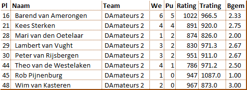 D'Amateurs speelde met een viertal in de eerste klasse van de provinciale dambond. Dit viertal werd steeds samengesteld uit meerdere spelers. Beoogd wordt dat de spelers die graag bondswedstrijden willen spelen daar de gelegenheid voor krijgen. Maar ook dat het onderlinge programma van D'Amateurs niet in het gedrang komt.