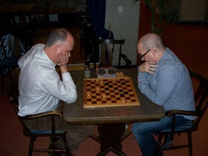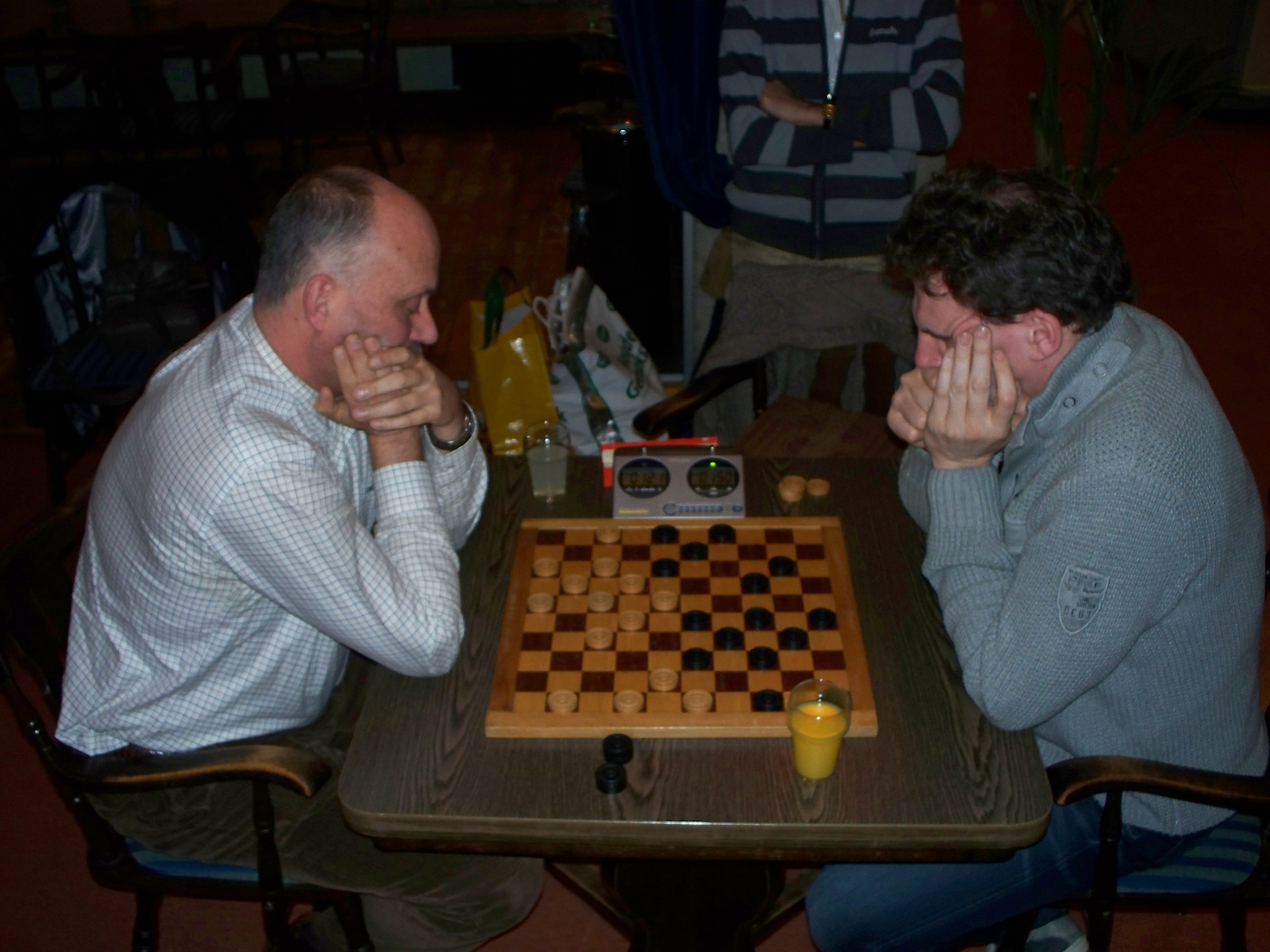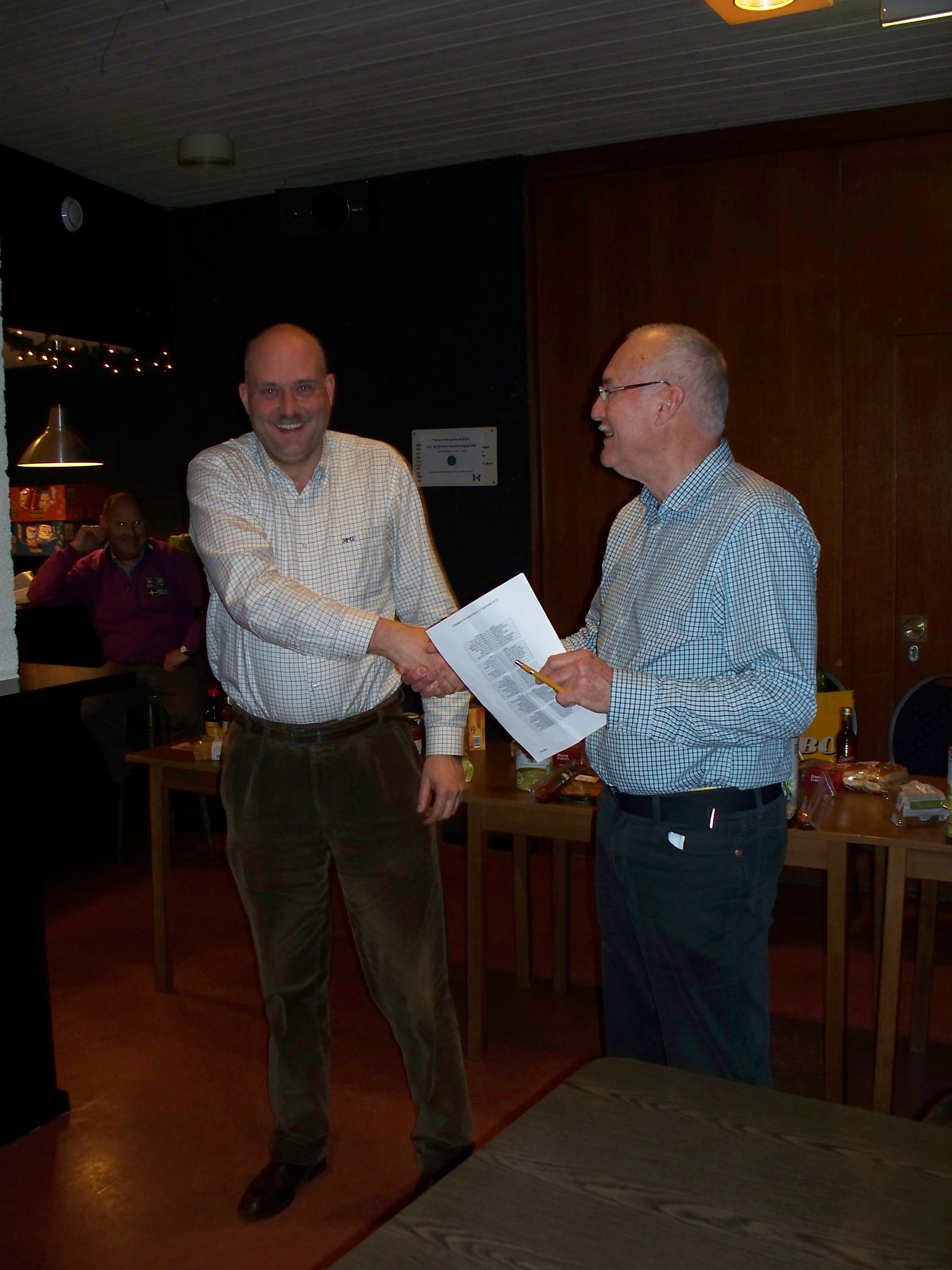 Deze keer was 13 het geluksgetal voor Jos. In deze ronde speelden Willem-Peter en hij hun onderlinge partij. Jos behaalde voordeel en speelde het eindspel feilloos uit. Daardoor kwam hij alleen op kop. Na ronde 14 mocht Jos zich kampioen noemen. Hij behaalde zelf remise tegen John, maar Willem-Peter verslikte zich in Rob. De laatste partij tegen Antoine was voor Jos nog slechts een partij voor de statistieken. Antoine kwam niet verder dan remise en kwam net tekort op Kees die samen met Willem-Peter al snel de strijdbijl had begraven en tot een grootmeester remise besloot.