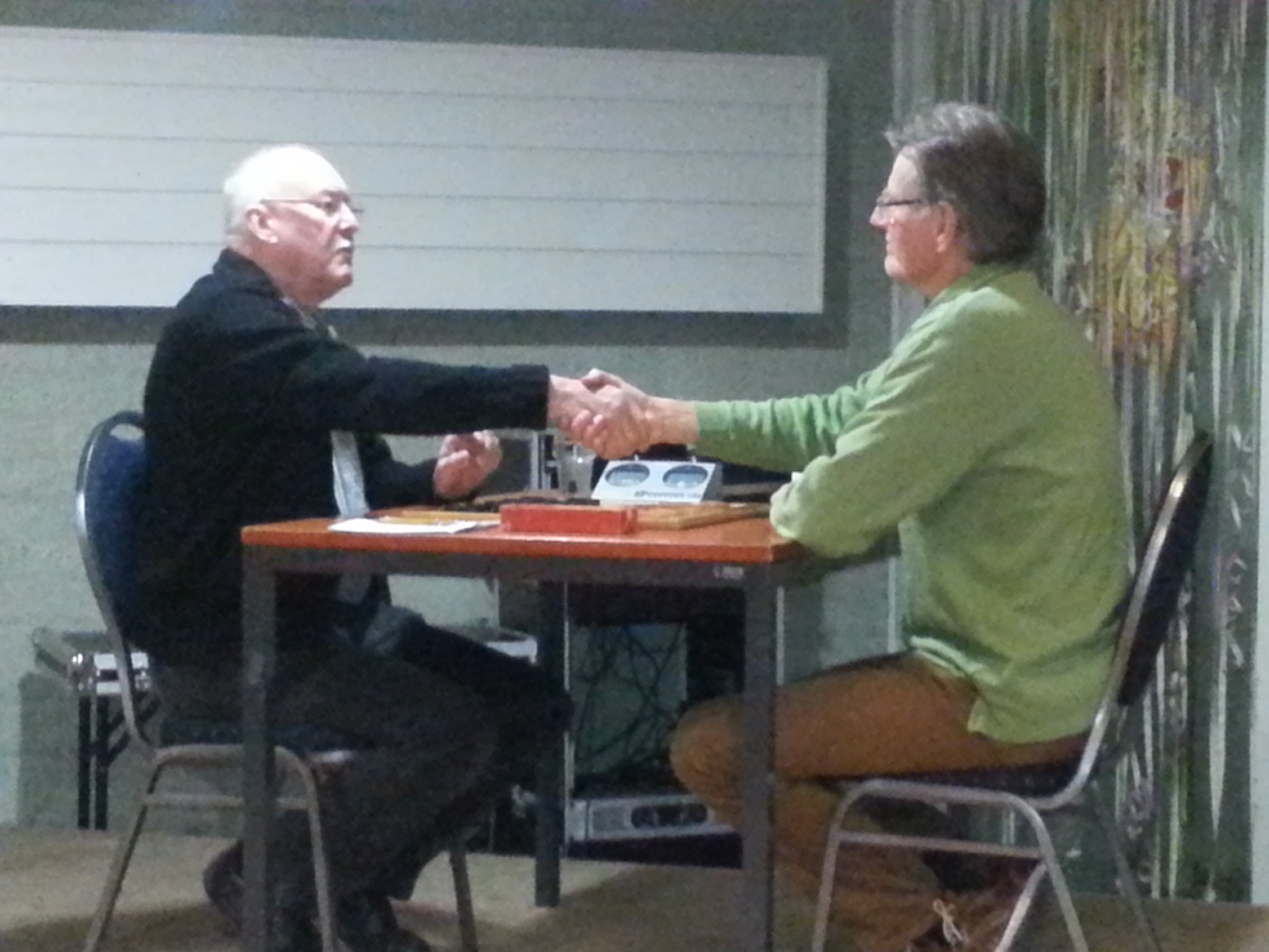 Het was een avond met verrassingen. Lambert leek te winnen van Cor, maar verloor de partij. Cor op zijn beurt zat meer in zijn maag met de klok als met zijn tegenstander Toon. Die maakte daar dankbaar gebruik van en strafte de mindere zetten van Cor meteen af. Lous werd de winnaar van de avond. Hij won van Toon en speelde gelijk tegen Cor en Lambert.