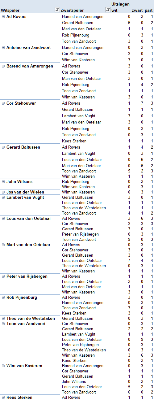De al eerder gespeelde partij tussen Ad en Lous is in de uitslagen