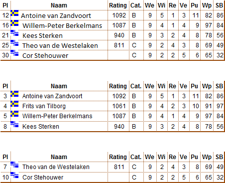 Voor Antoine, Willem-Peter en Kees waren er de derde, vijfde en achtste plaats in poule B.