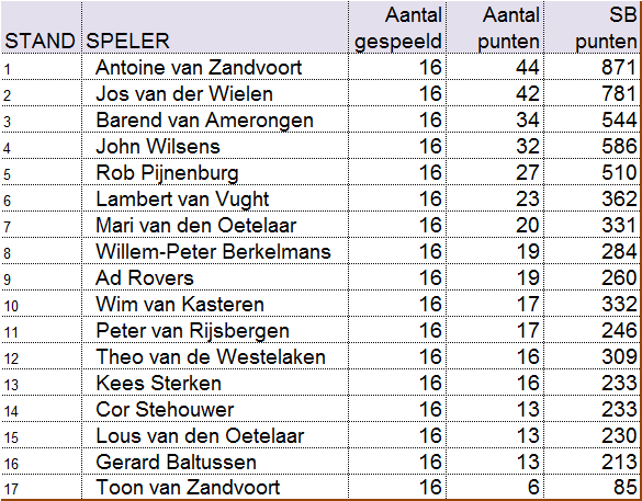 de competitie te worden. Toon behaalde remises tegen Wim en tegen Cor
