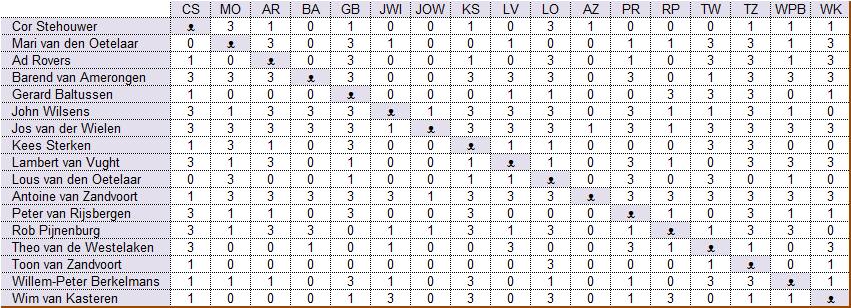 fouten. Antoine won van Willem-Peter en Jos won van Lous. Daarmee