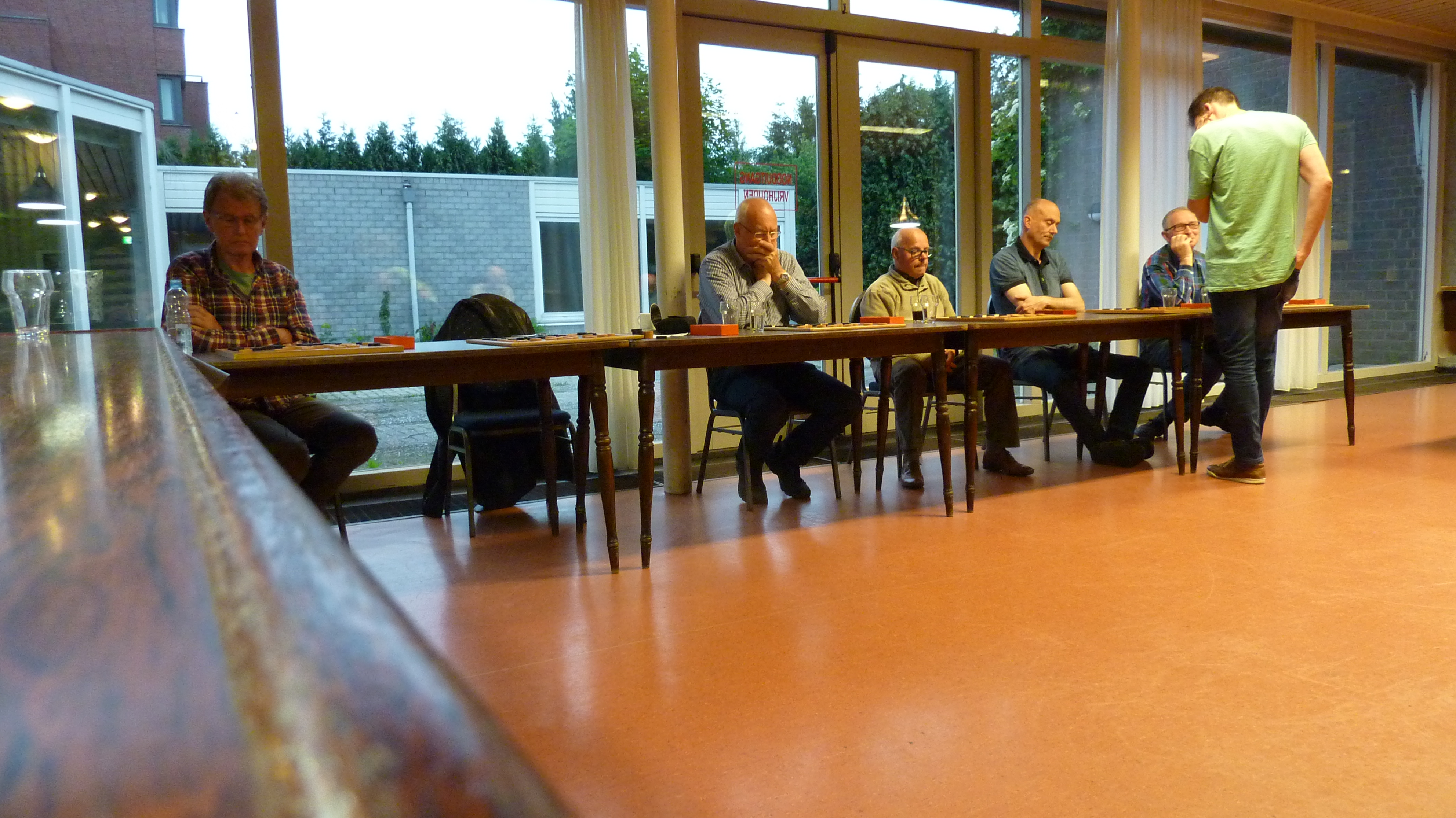 Op donderdag 2 juni heeft Antoine zijn kampioenssimultaan gegeven. Aanvankelijk leek het erop dat hij het kunststukje van Toine Brouwers wilde evenaren. Na de remise tegen John boekte hij drie overwinningen op een rij. Lambert bood goed tegenspel en behaalde ook een remise. En weer waren er drie overwinningen voor Antoine. Daarna was het echter gedaan met onze grootmeester. Hij boekte remises tegen Rob en Cor, maar verloor van Barend, Ad en Peter. De overwinning op Wim was er een voor de statistieken. Alhoewel een analyse van een kwartier onvoldoende was om met zekerheid te bepalen of er een remisevariant heeft ingezeten.