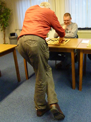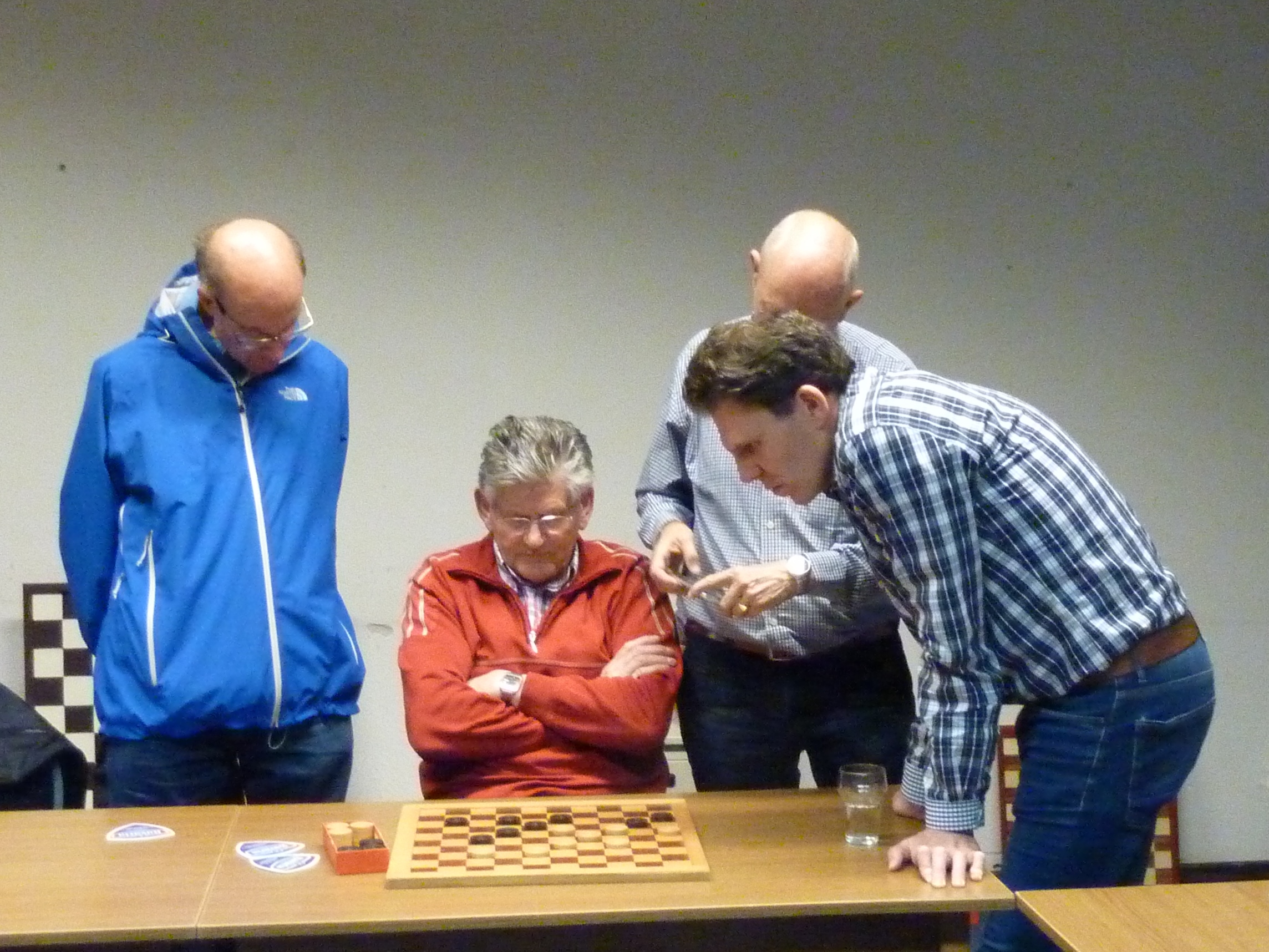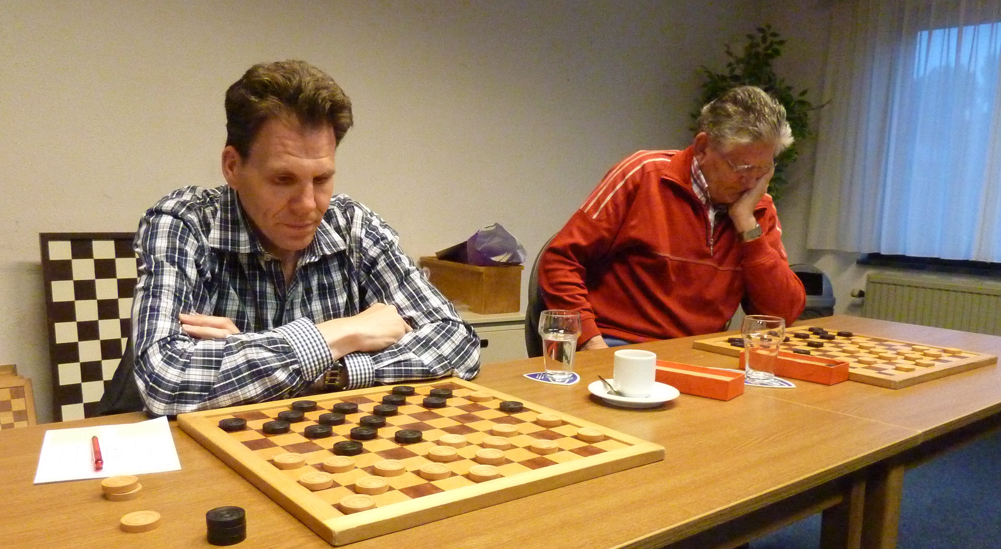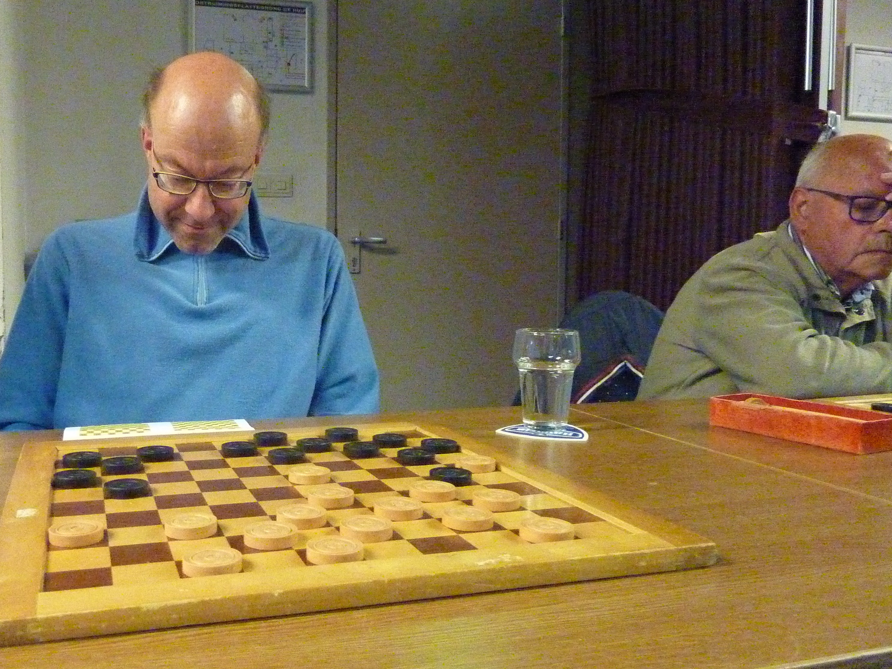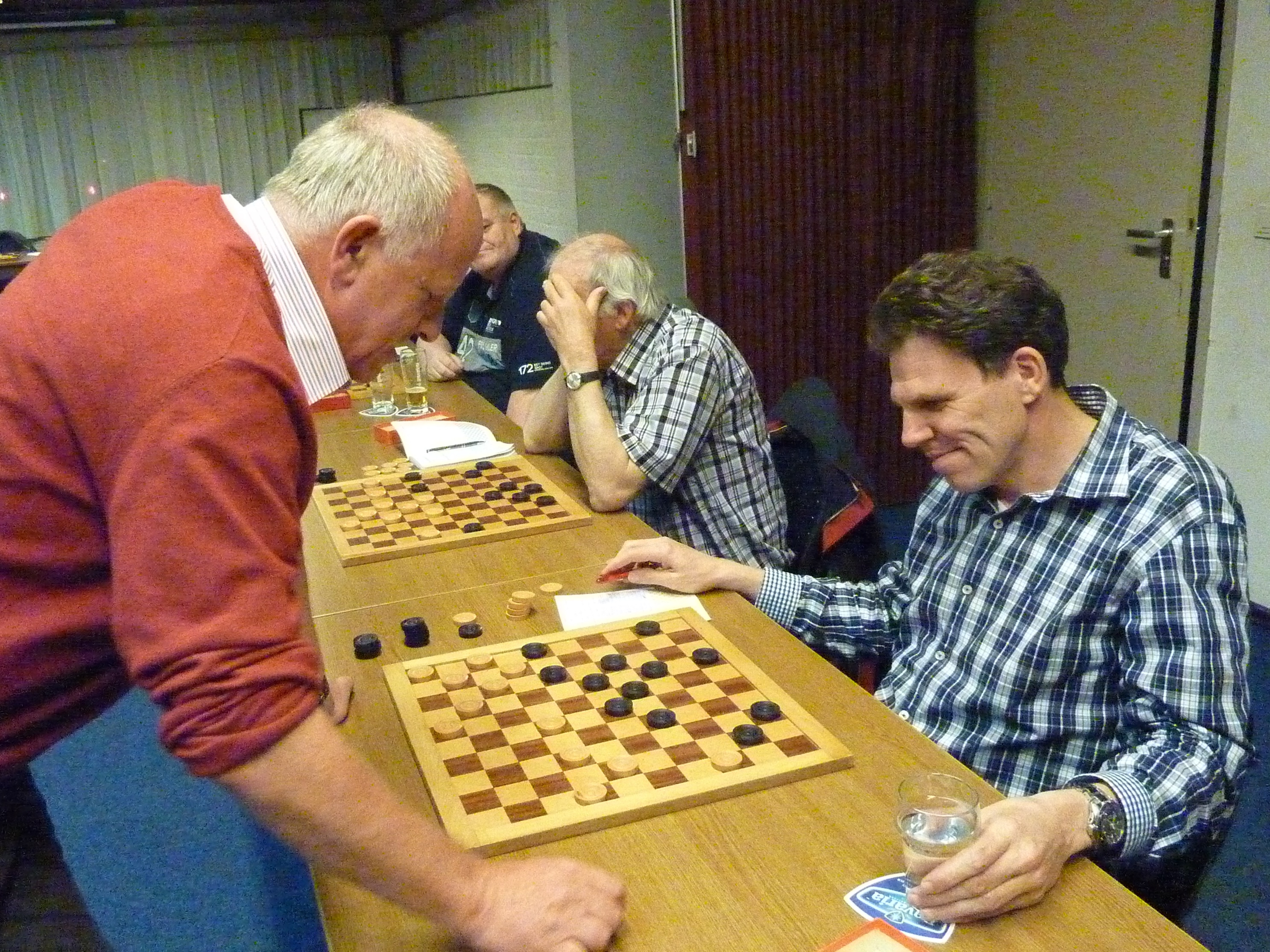 Ook Rob kon een dam nemen maar vond die te duur. Hij speelde wat anders en even later had Toine een dam.