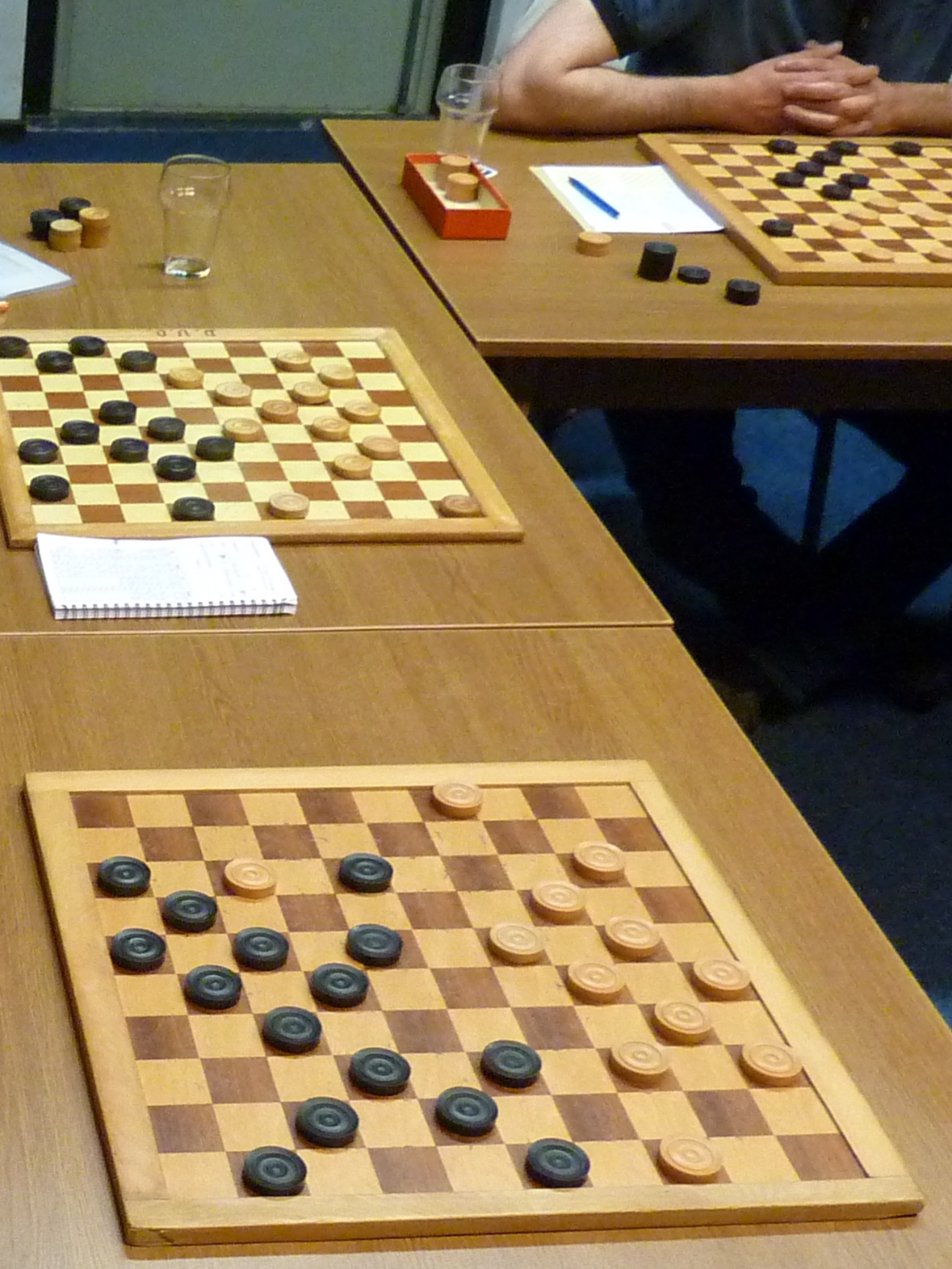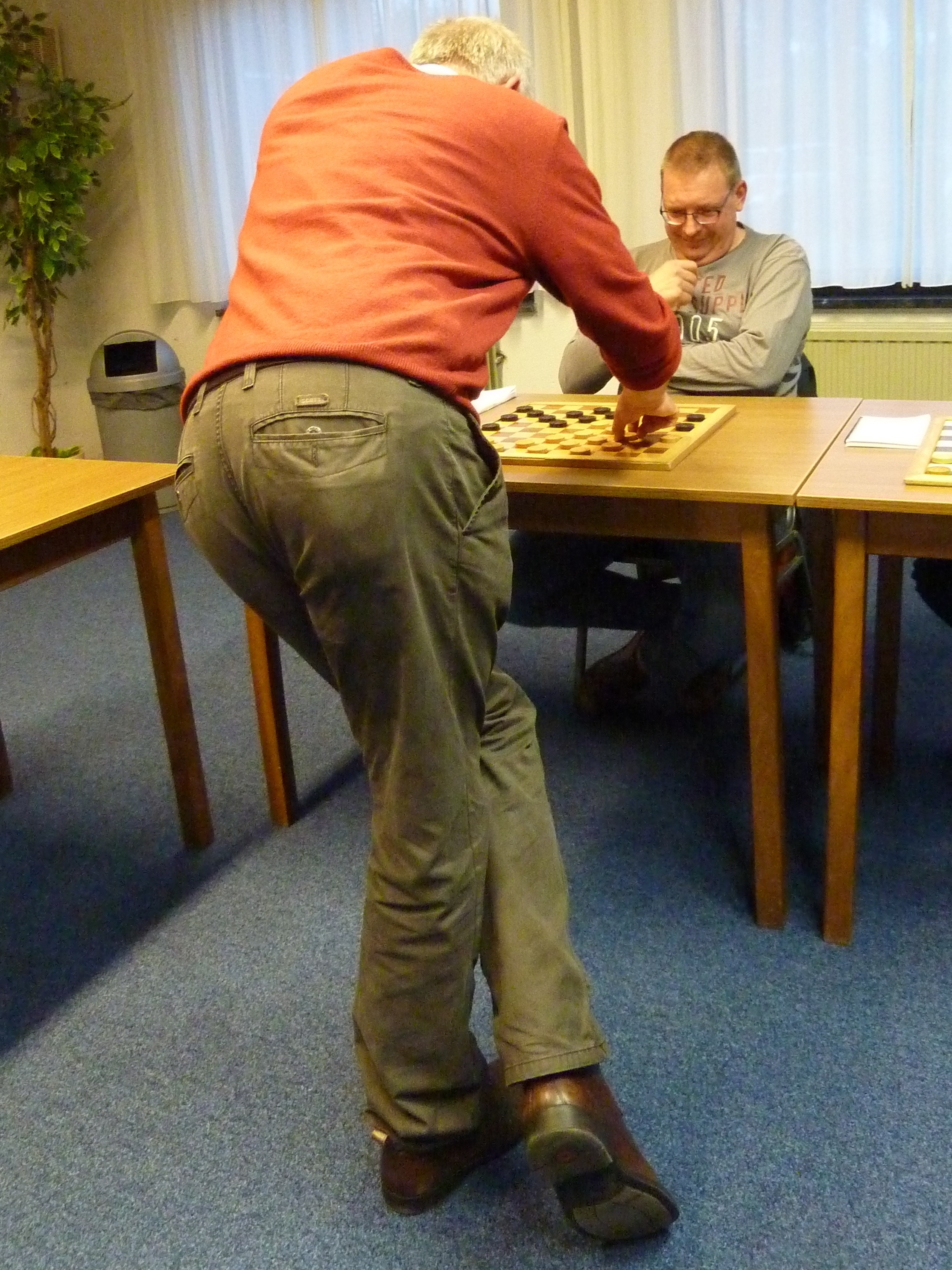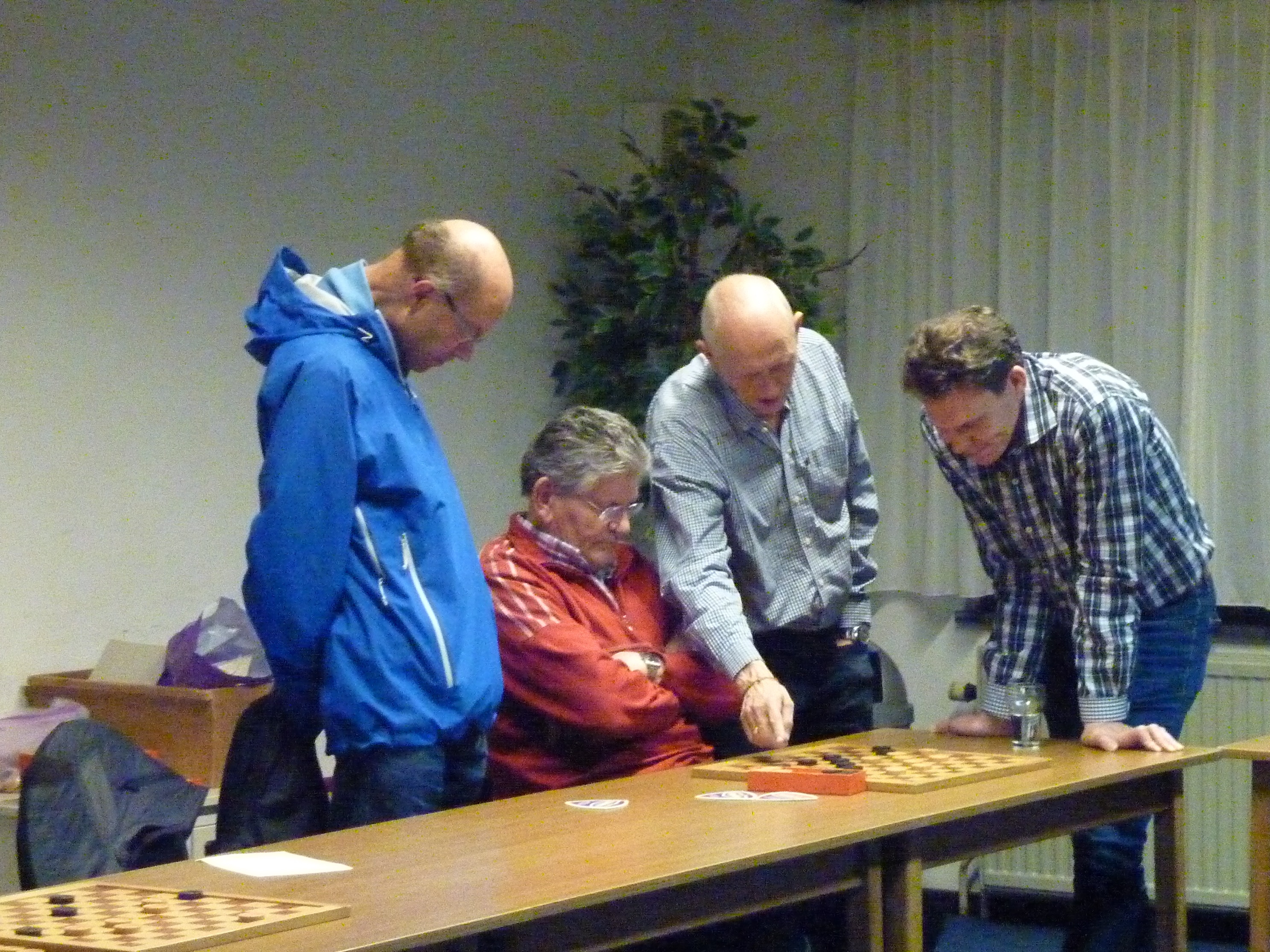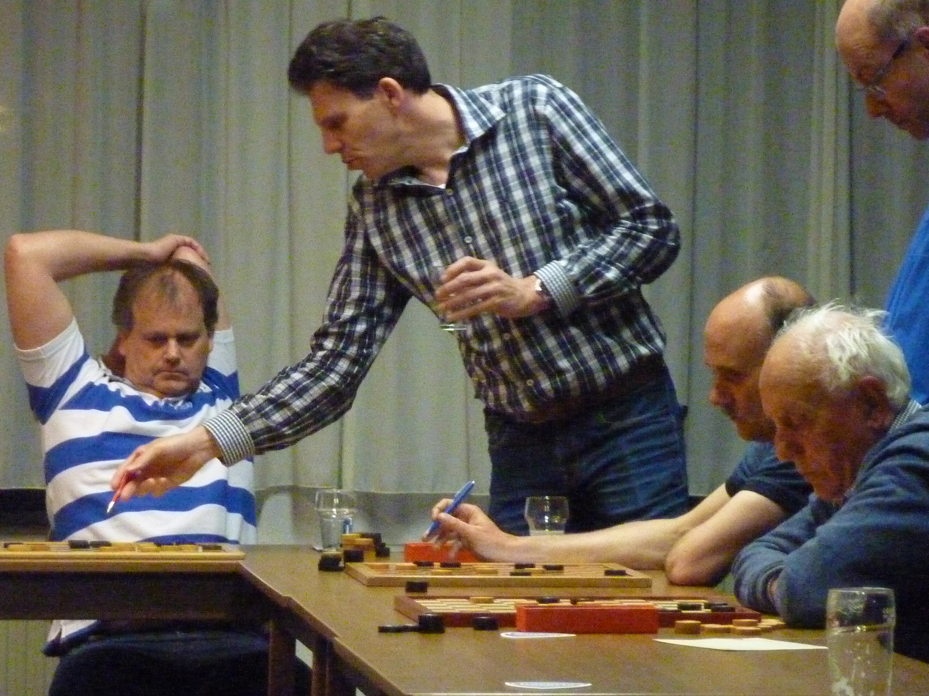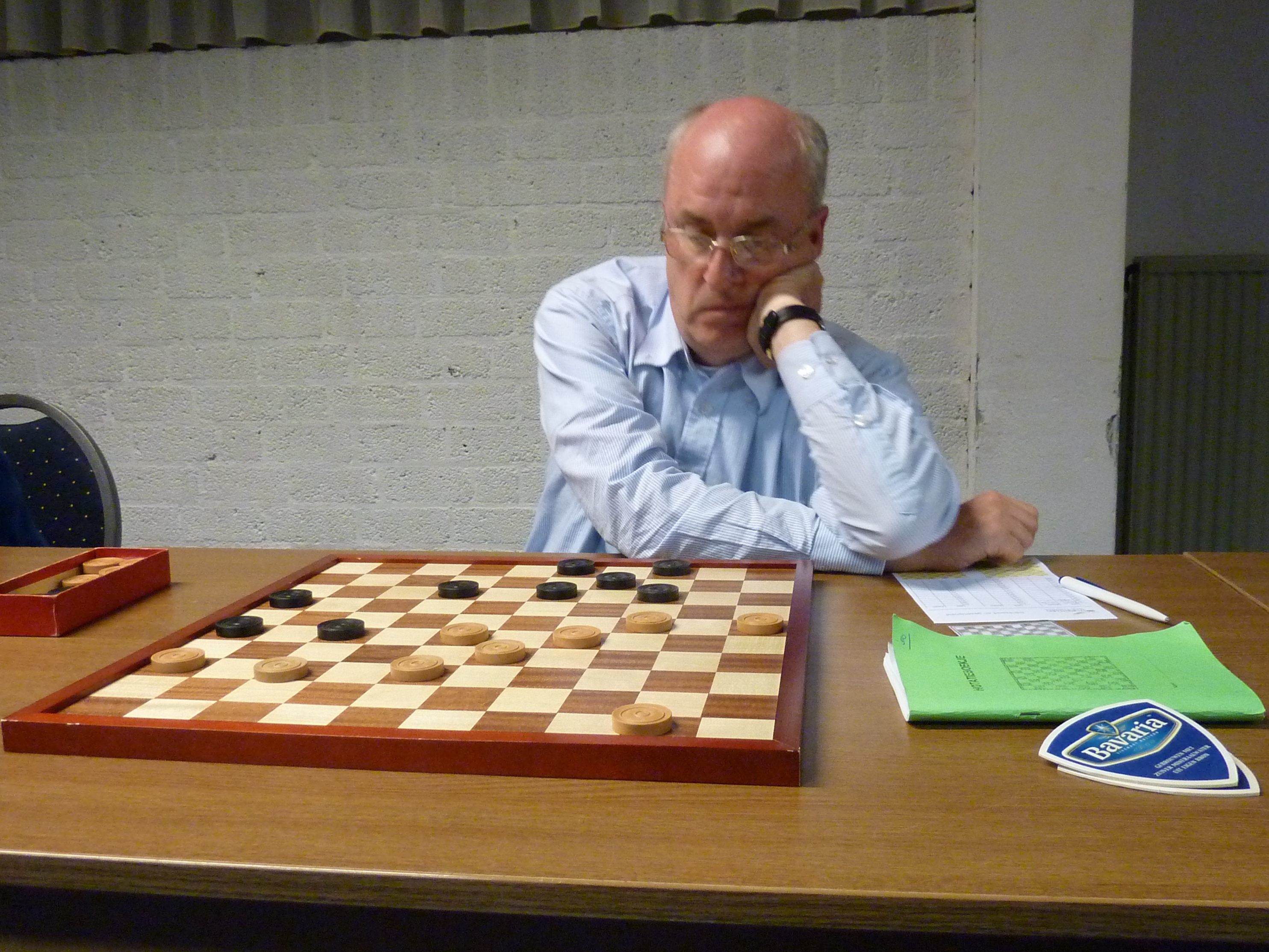 Ook Rob kon een dam nemen maar vond die te duur. Hij speelde wat anders en even later had Toine een dam.