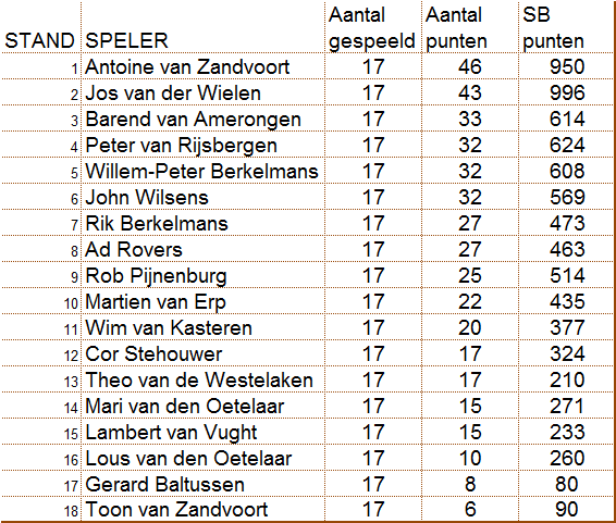 Antoine behaalde maar liefst 46 punten, wat mede te danken is aan het drie-puntensysteem dat door damclub D'Amateurs wordt eghanteerd.