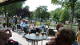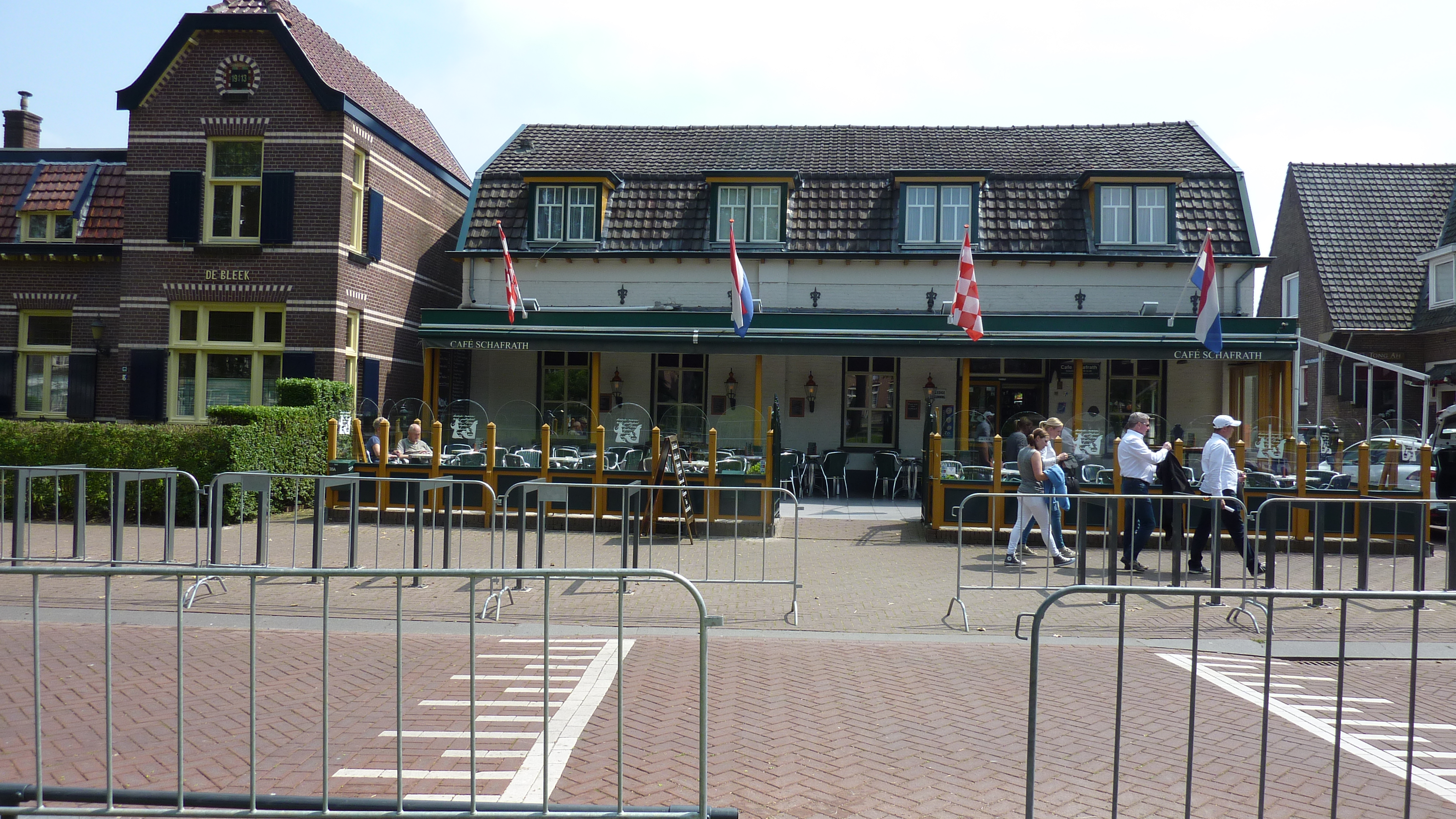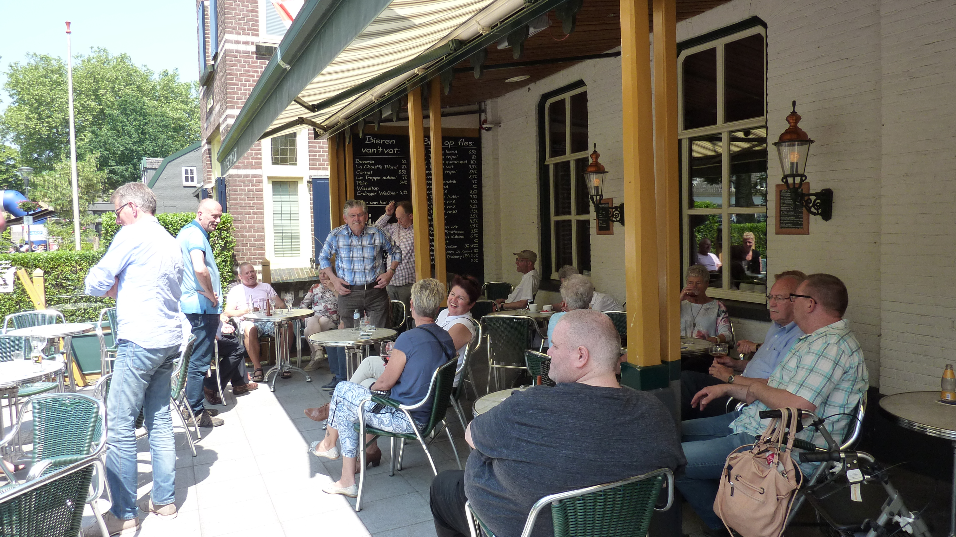 Op zaterdag 4 juni heeft D'Amateurs met de partners een bezoek gebracht aan het plaatsje Nuenen. Daar bleek dat men op D'Amateurs had gerekend. Het ganse park voor Café Schafrath was met hekken afgezet, waarbij de oversteekplaatsen voor D'Amateurs niet waren vergeten. Onder een stralende zon werd het terras van café Schafrath door Barend en Miriam geconfisqueerd. En dat was maar goed ook. Vele dammers lieten lang op zich wachten. Jacques had het merkwaardige verhaal dat er onderweg een aantal obstakels waren waar hij met de fiets niet goed door kon. Peter had een betere verklaring. Hij kon het café niet vinden. Maar op dat moment hadden we de telefoon niet meer nodig om elkaar te spreken. De gebruikelijke koffie met gebak werd genuttigd. Vooral het gebak met kersen viel erg in de smaak. Op een gegeven moment betekende 'zonder' niet zonder slagroom, maar zonder kersen. Peter kreeg van zijn vele vrienden uiteraard het advies om vooral naar het kersengebak te vragen.