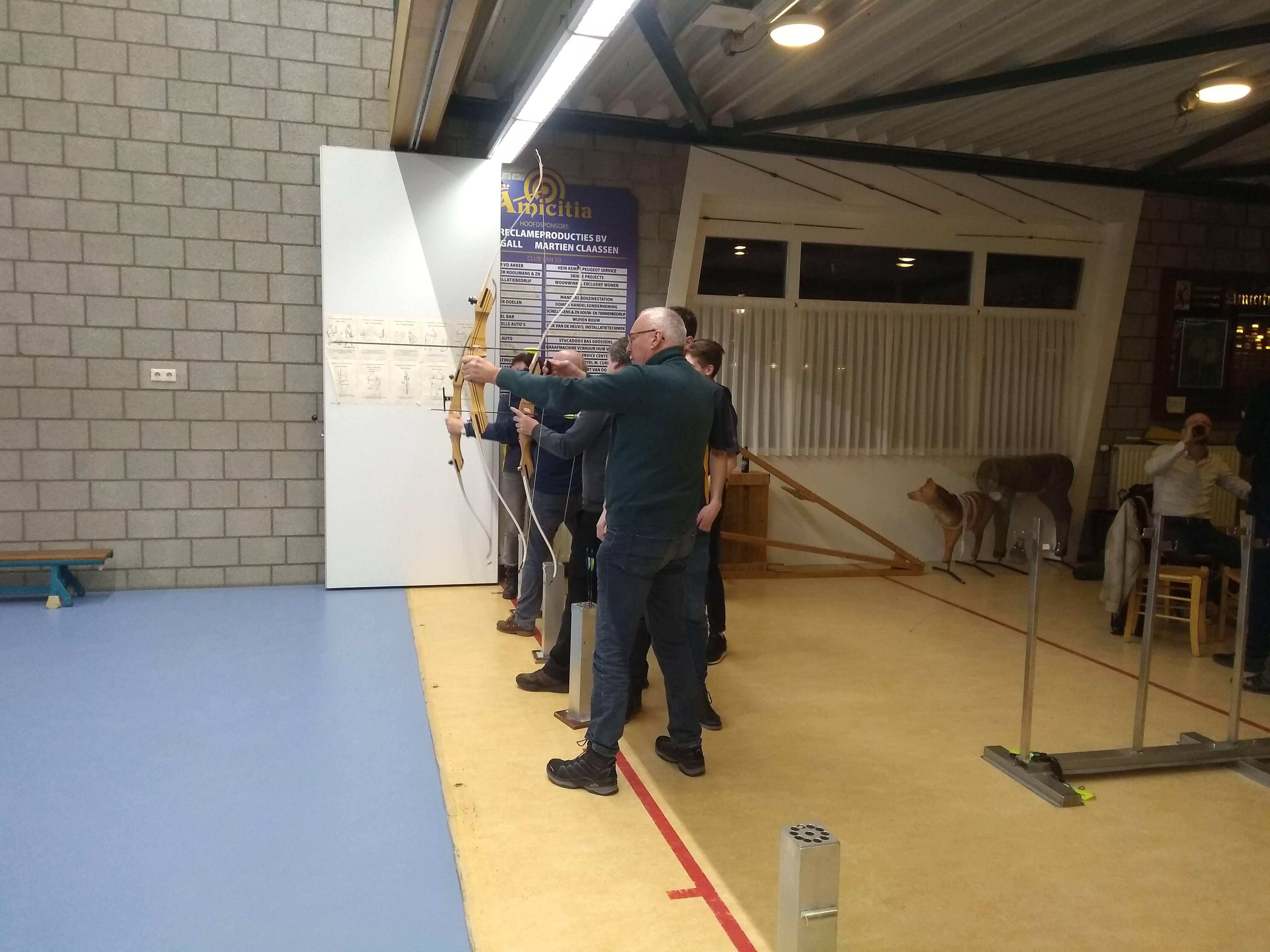 D'Amateurs is op 21 februari weer eens gaan boogschieten. Deze keer waren wij te gast bij Amacitio in Schijndel. Na een gedegen instructie kon het niet meer fout gaan. Al waren er wel bezwaren dat niet elke boog even goed gespannen stond. Na wat oefeningen brandde de strijd los. Barend en Ad schopten het tot de finale. Daarbij had Barend het geluk aan zijn zijde. Steeds was het Ad die het beste resultaat boekte. Maar Barend kwam langszij en knalde het laatste schot dichter bij de roos dan Ad had kunnen vermoeden. Barend veroverde de beker. Arina won mogelijk een nog betere prijs. Als enigste vrouwelijke schutter ging zij met een fles wijn naar huis. En die hoeft niet elke dag gepoetst te worden.