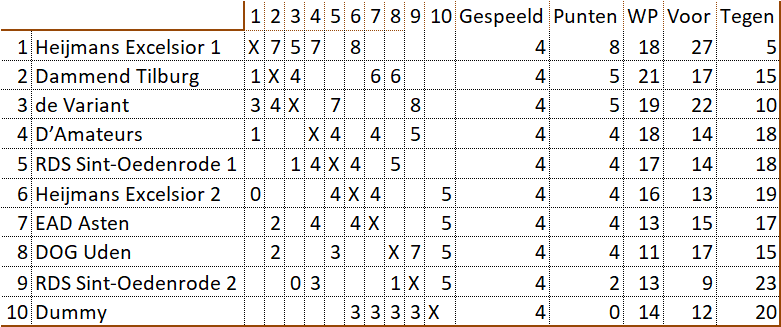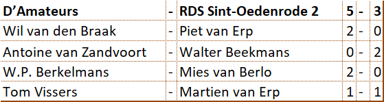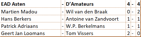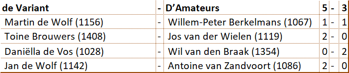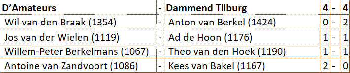 Weer kwam het niet goed uit, maar heeft D'Amateurs toch weer deelgenomen aan de Brabantcup. Tijdens de halve finale moest er genoegen worden genomen met de vierde plaats. Precies voldoende om ook nog in de finale te mogen uitkomen. Ten koste van de eigen Rapid competitie speelden Antoine, Jos, Wil en Willem-Peter met succes in deze finale. Er werd revanche genomen op het sterke team van Heijmans Excelsior. Tegen De Variant kwam ons team net tekort. Om daarna tegen de Brabants kampioen gelijk te spelen. Kijkende naar de derde plaats en de rating van de tegenstanders kan ons team terugkijken op een geslaagde deelname.