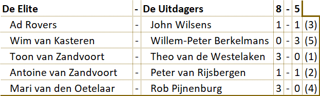 Wim capituleerde en Willem-Peter boekte de enige winst voor zijn team.
