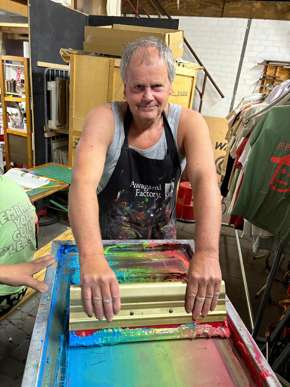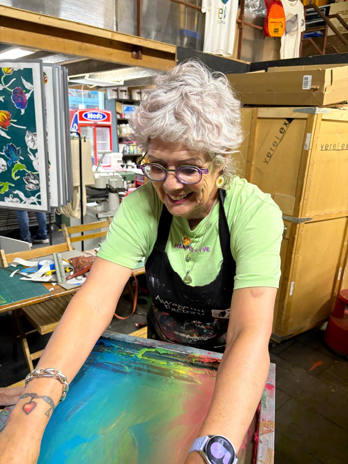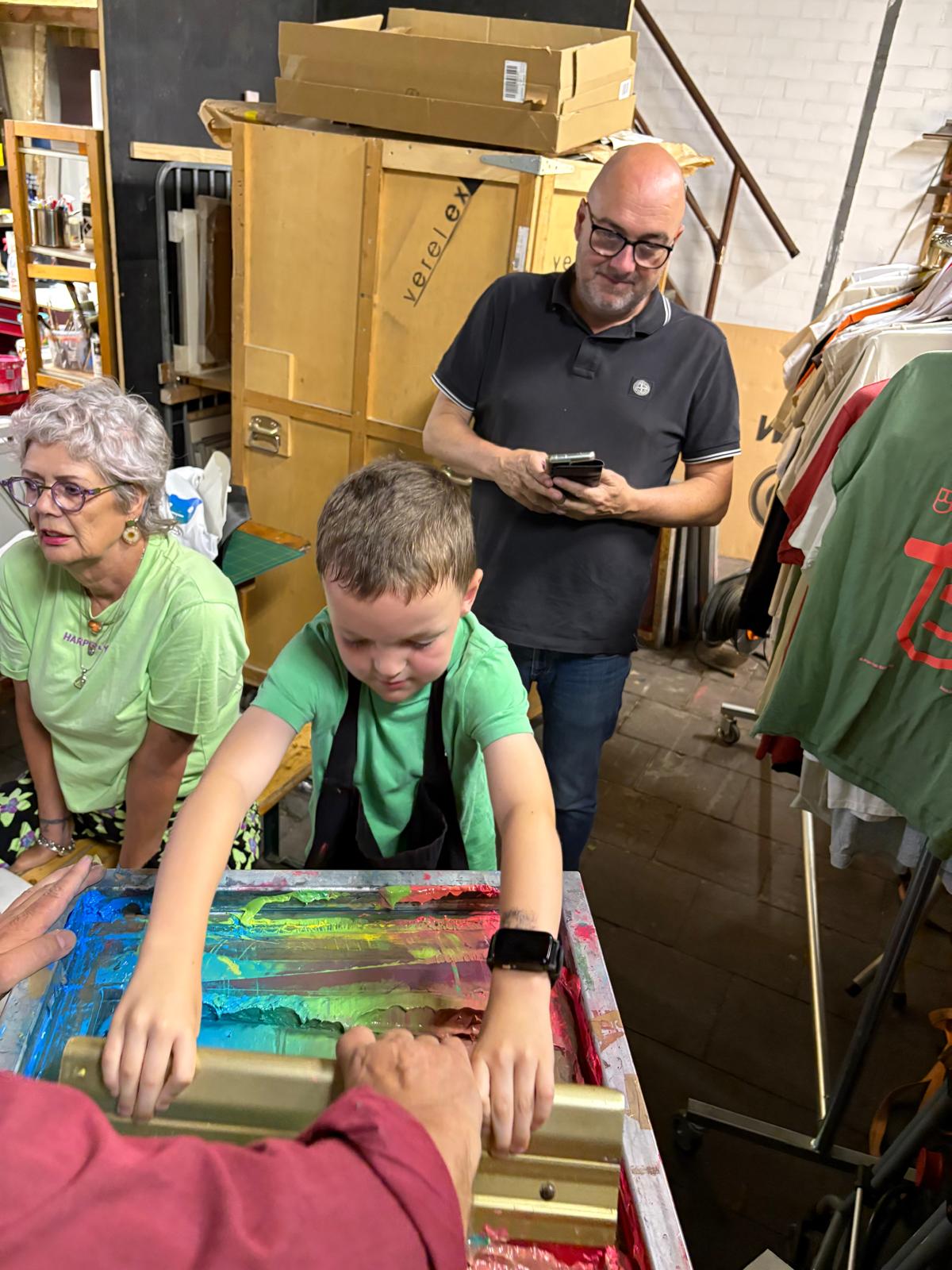De workshop 'Zeefdrukken op je eigen T-shirt' bij Grafische Werkplaats Kurtface met uitleg en begeleiding door een zeefdruk-professional.