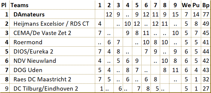 Anders zal D'Amateurs in ronde 9 het kampioenschap moeten binnenhalen. |
