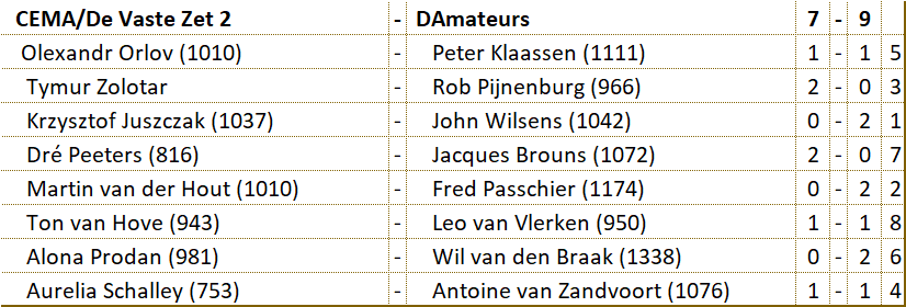 Tegen CEMA/De Vaste Zet 2 werd een benauwde zege behaald. |