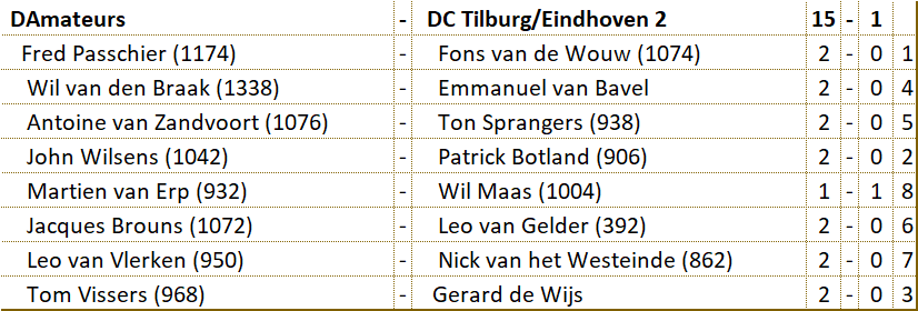 Tegen DC Tilburg/Eindhoven 2 werd overtuigend gewonnen. |