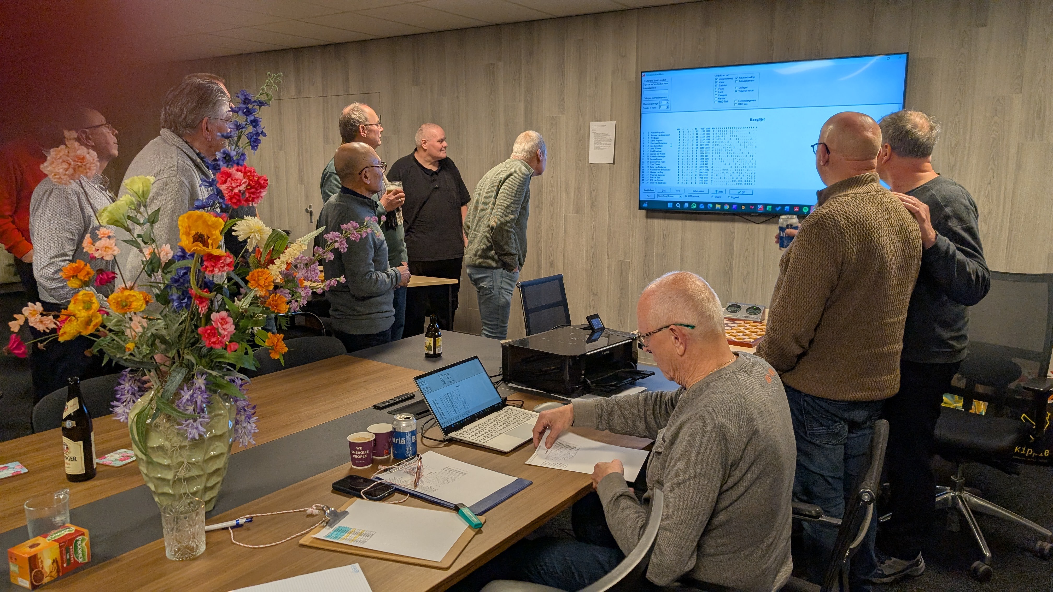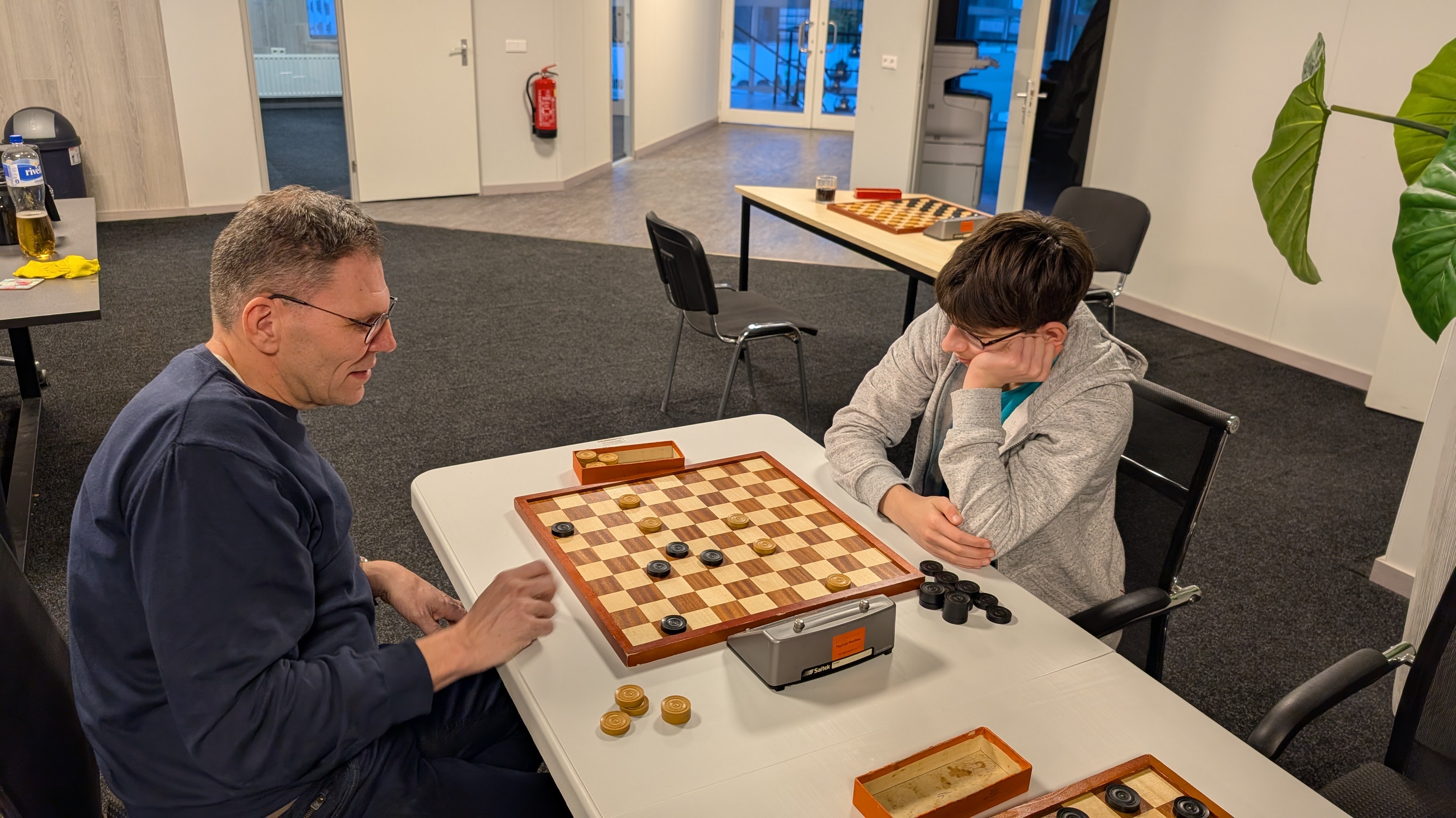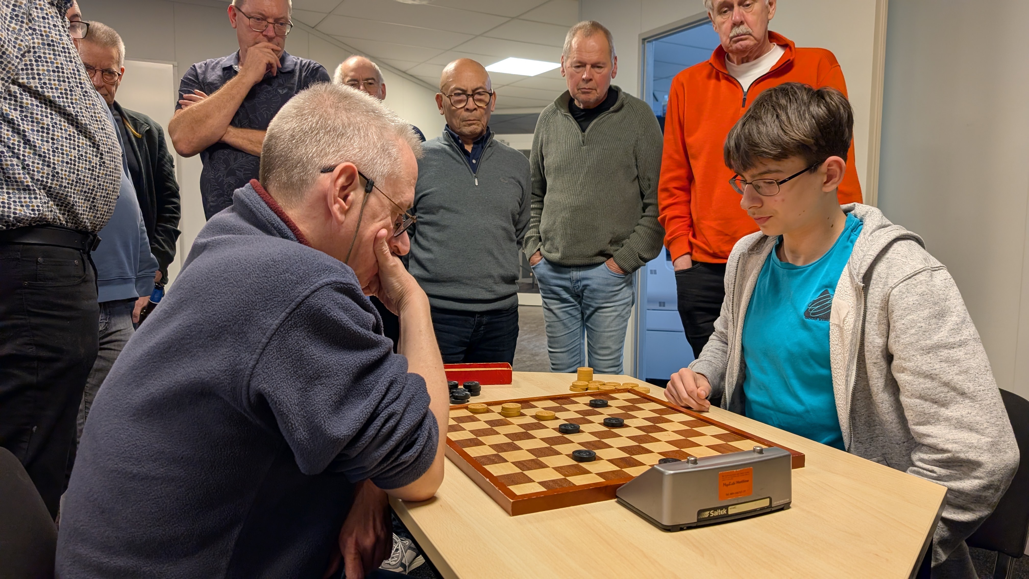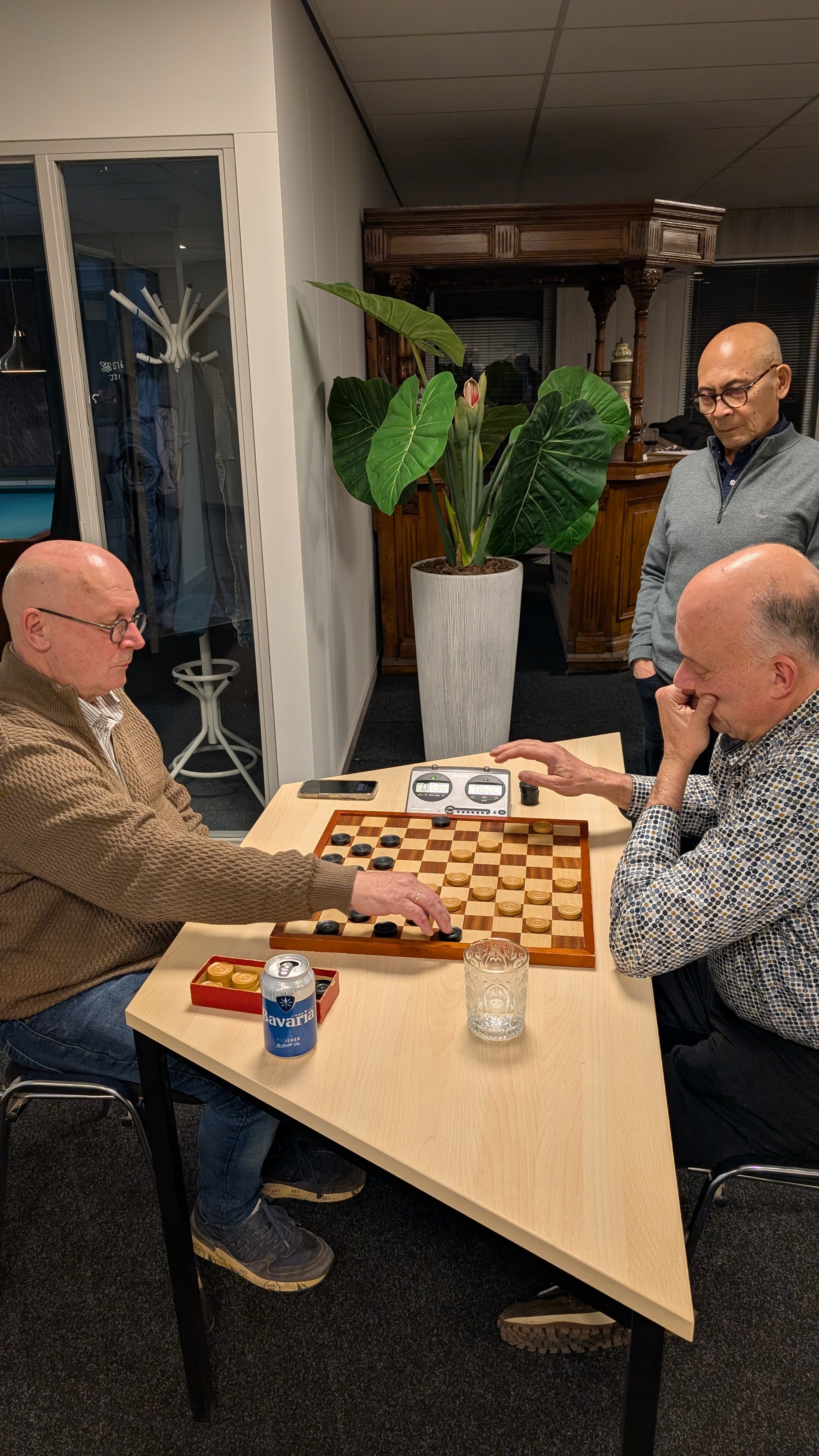 Er werd gespeeld met een tempo van 8 minuten en 5 seconden per zet. Dat was voor enkele deelnemers een verademing terwijl de profs vonden dat het een slakkegangetje betrof. Het plezier was er niet minder om. Vooraf werd nog eens benadrukt dat het belangrijkste uitgangspunt is dat sportiviteit en gezelligheid voorop staan. Dat het niet doorspelen nadat de klok gevallen is daar ook onder valt was voor bijna iedereen duidelijk.