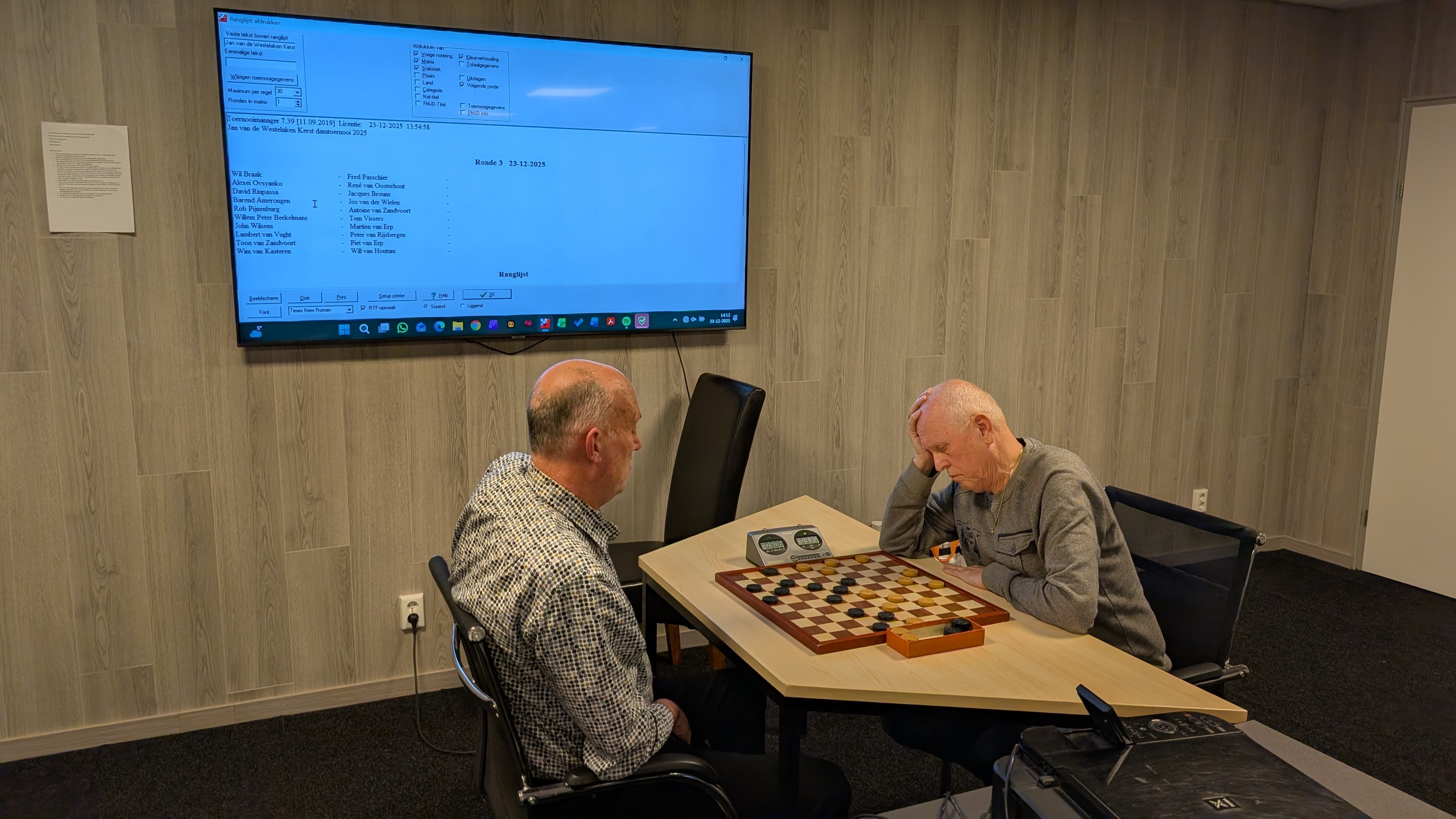 Op dinsdag 23 december 2025 is het Jan van de Westelaken sneldamtoernooi gehouden. Onze damvrienden waarmee we vanwege de landelijke competitie contacten onderhouden werden ook uitgenodigd. Rob Pijnenburg van Continu Isolatiewerken stelde de fraaie speellocatie ter beschikking. Hij zorgde er ook voor dat de inwendige mens niets tekort kwam. Competitieleider Barend heeft alles in goede banen geleid.