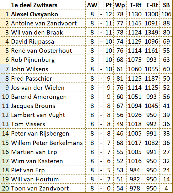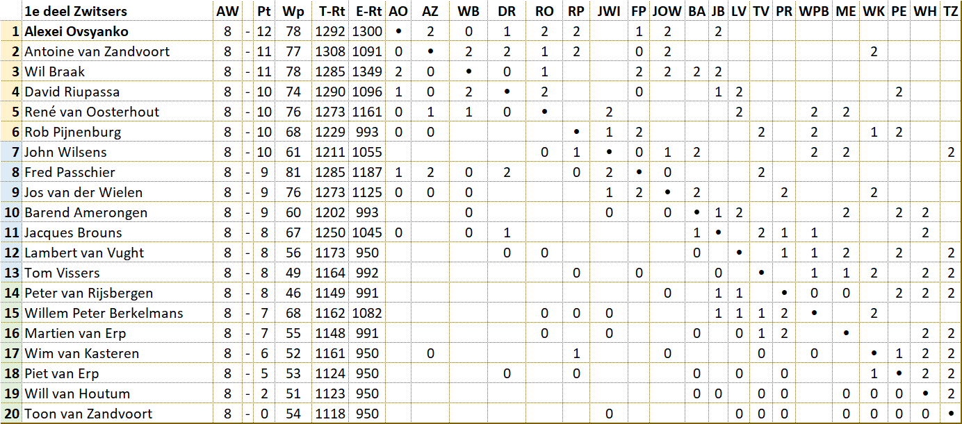 Alle persoonlijke uitslagen en overzichten voorronde |