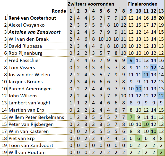 René is de derde speler die na twee keer Alexei en één keer Wil van den Braak het toernooi in deze vorm op zijn naam zette.